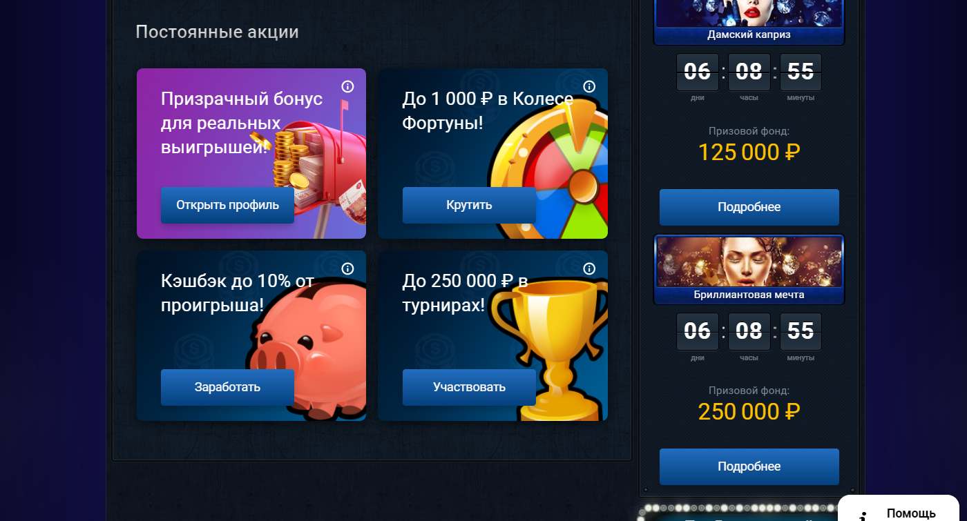 Вейджер для бонусов варьируется от х20 до х50. Условия для вознаграждения представлены в разделе «Акции» вместе со списком актуальных предложений.