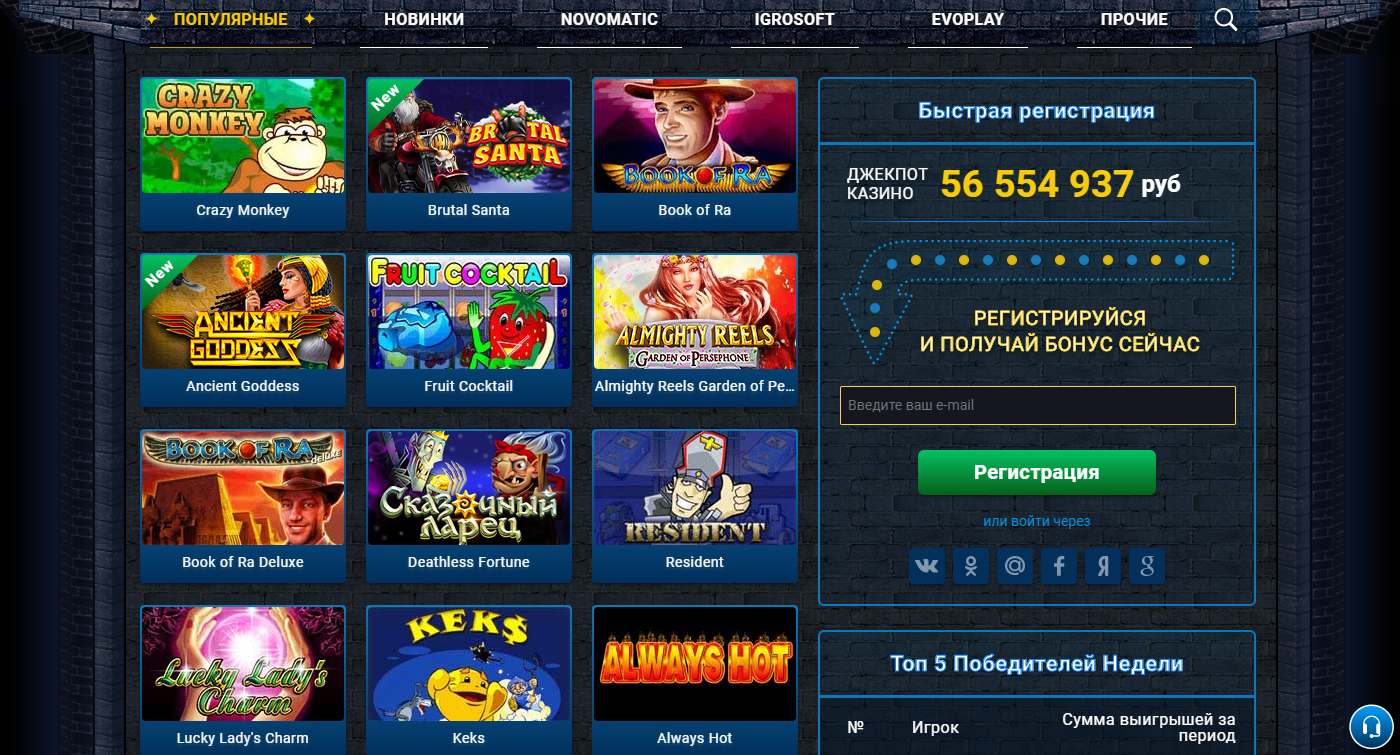 - Софт: Novomatic, Igrosoft, Mega Jack, EvoPlay, Microgaming, NetEnt
